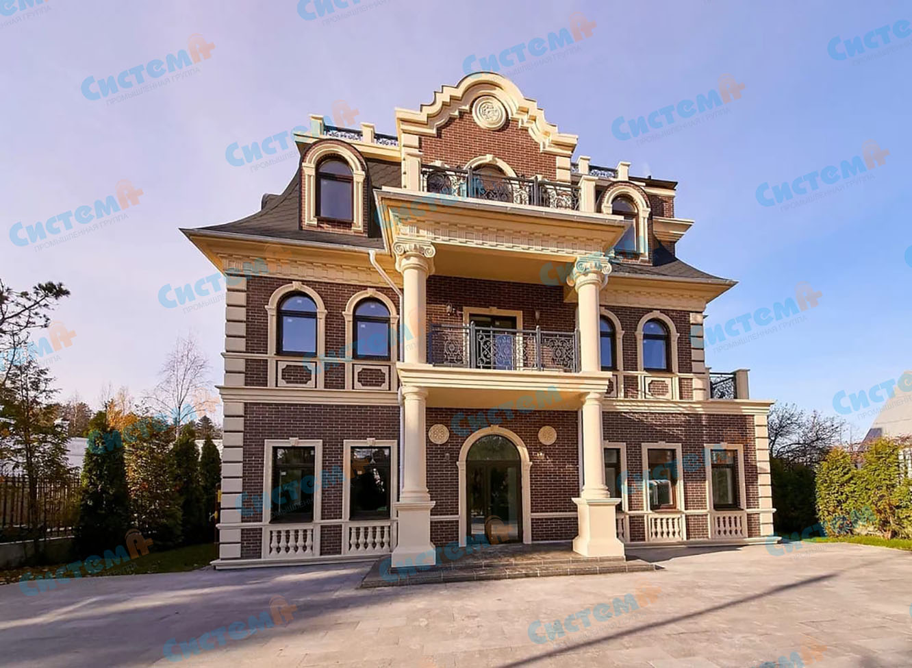 Эти элементы располагают у входа в здание. Они подходят для классического стиля, придают зданию архитектурную выразительность, добавляют строению изысканности и вкуса.